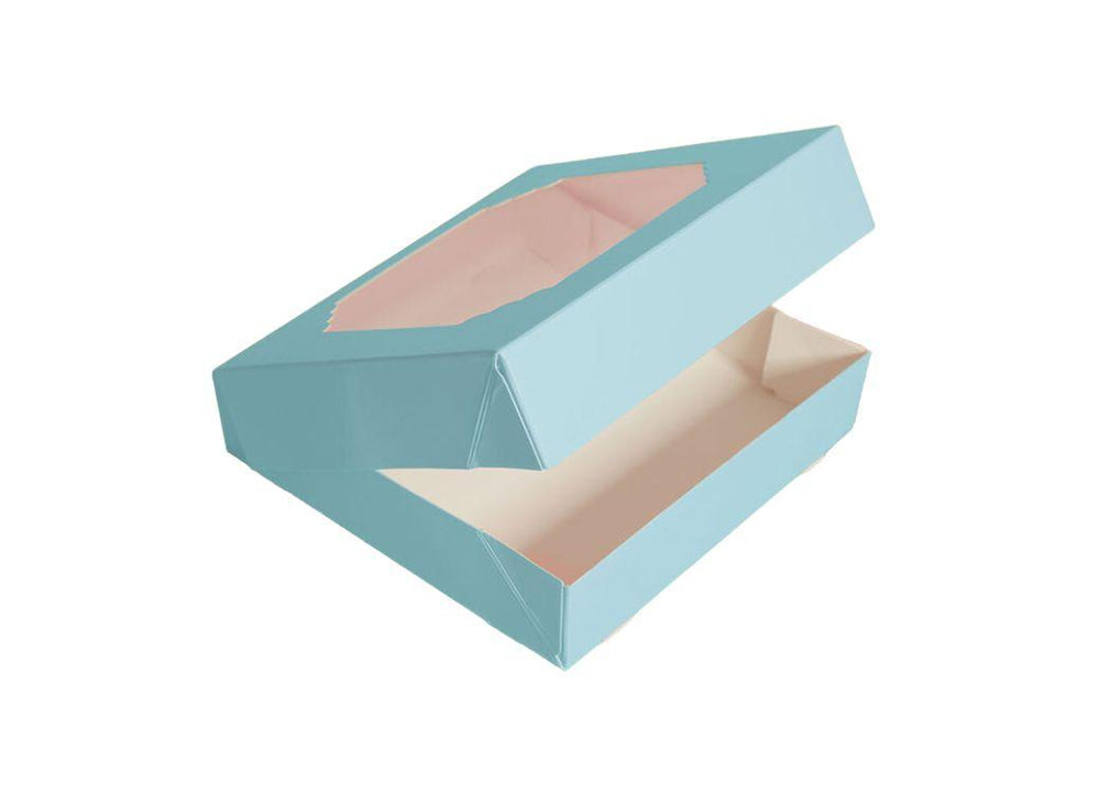 Pack of 5 pastel blue cardboard boxes, with hinged lid and clear window.