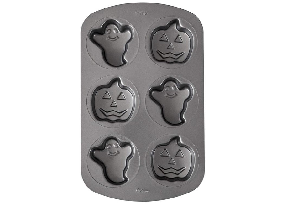 Includes 6 cavities: 3 pumpkin and 3 ghost. Decorate as shown or create your own designs.