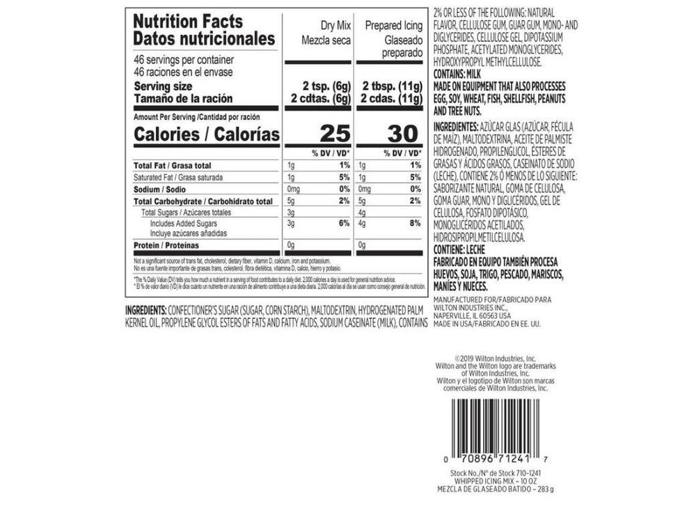 Need to whip up a batch of icing for cupcakes or a simple layer cake? It couldn't be easier with Wilton's whipped icing mix. Simply add water, blend with an electric mixer and enjoy this soft, vanilla whipped frosting.